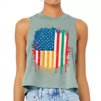 USA Flag Racerback Cropped Tank - Creative Women's Tank - Patriotic Tank Top