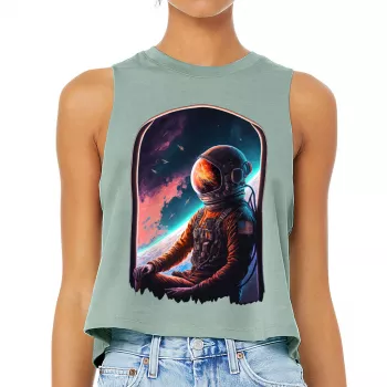 Space Astronaut Racerback Cropped Tank - Galaxy Women's Tank - Cool Tank Top