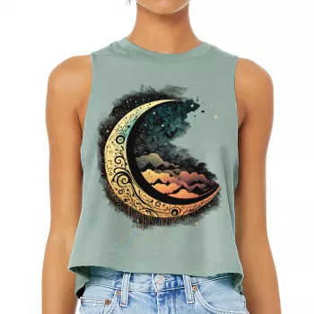 Moon Graphic Racerback Cropped Tank - Cool Art Women's Tank - Printed Tank Top