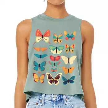 Butterfly Print Racerback Cropped Tank - Cute Graphic Women's Tank - Best Print Tank Top