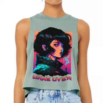 Game Over Racerback Cropped Tank - Cool Art Women's Tank - Illustration Tank Top