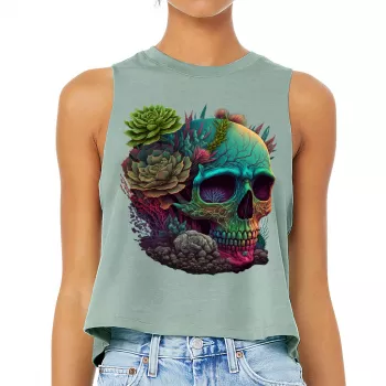 Skull Graphic Racerback Cropped Tank - Gothic Women's Tank - Cool Art Tank Top