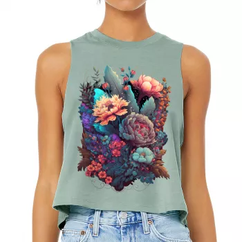Flower Graphic Racerback Cropped Tank - Cute Women's Tank - Digital Art Tank Top
