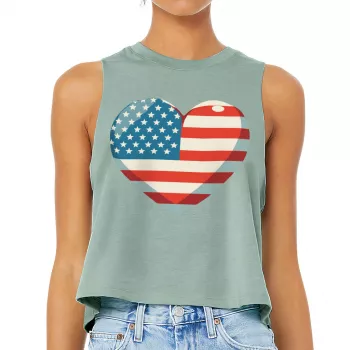 Flag Heart Racerback Cropped Tank - USA Flag Women's Tank - Patriotic Tank Top
