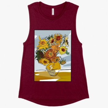 Women's Muscle Van Gogh Sunflowers Tank - Art Print Tanks