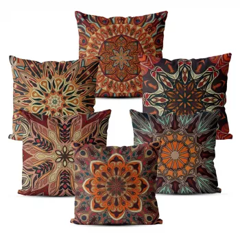 Mandala Bohemian Farmhouse Pillow Case – Linen Pillow Cover for Living Room and Bedroom (45x45cm, 40x40cm)
