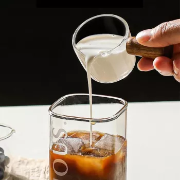 Japanese-Style Transparent Glass Milk Cup with Wooden Handle