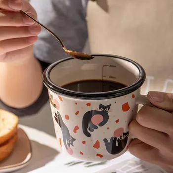 320ml Cute Animal Pattern Ceramic Mug with Scale