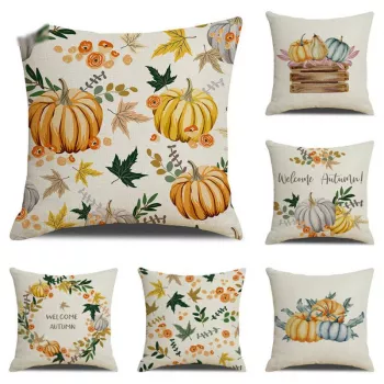 Festive Cotton Linen Pumpkin Pillow Cover - 18"x18" Fall Décor Cushion