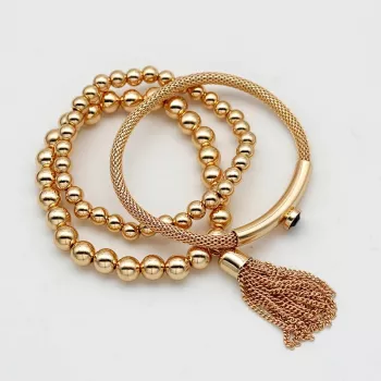 Elegant 3PCS Gold Color Round Bead Bracelet Set