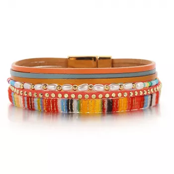 Boho Punk Rivet Colorful Leather Bracelet for Women – Vintage Handmade Pearl Beaded Charm Wrap Bangle Jewelry Gift