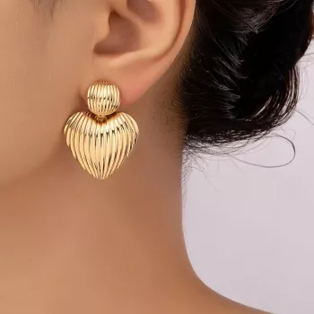 Trendy Gold Color Round Metal Heart Drop Earrings