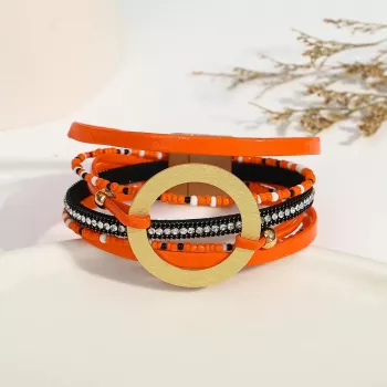 Boho Multilayer Gold Circle Leather Wrap Bracelet