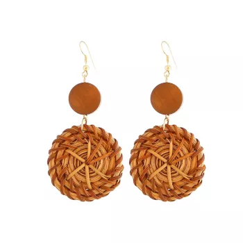 Trendy Bohemian Round Straw Woven Dangle Earrings