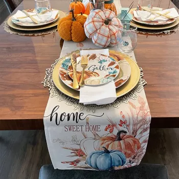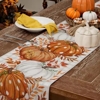 Autumn Pumpkin Vines Table Runner for Thanksgiving Decor