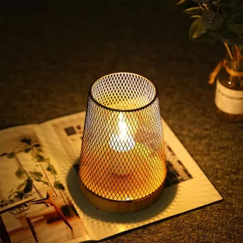 Battery Powered Metal Cage Table Lamp – Cordless LED Light
