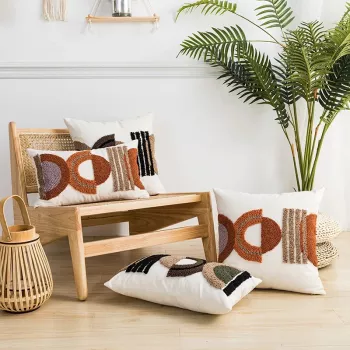 Brown Green Geometric Tufted Cushion Cover – Nordic Decorative Pillow for Couch