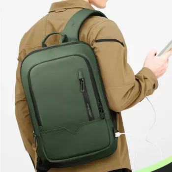 Men’s Slim Waterproof Laptop Backpack with USB Charging Port