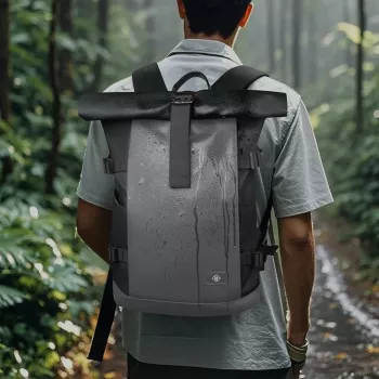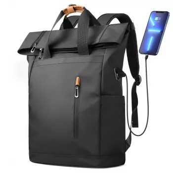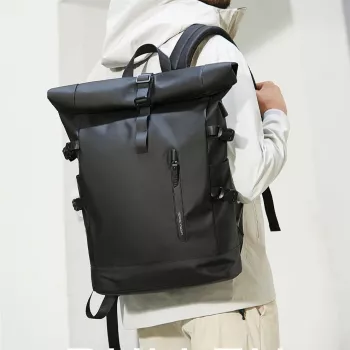 Men’s Rolltop Waterproof Travel Backpack with USB Port