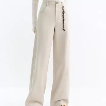 Slim Fit Wide-Leg Drawstring Office Pants with Contrast Waist and Pockets