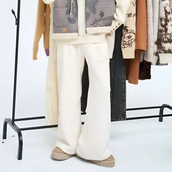 Winter Velvet White Star Wide-Leg High Waist Pants for Women