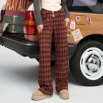 Retro Red Plaid High-Waist Straight Leg Winter Pants