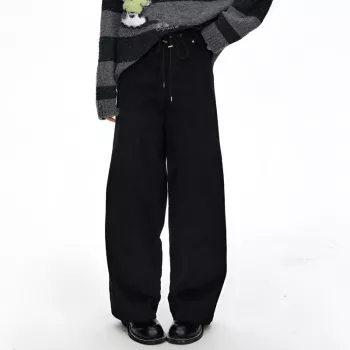 High-Waist Winter Knit Straight Pants with Drawstring and Pockets