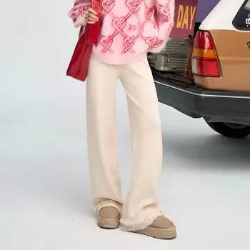 Women’s Winter Tassel Knit Straight Pants – High Waist Casual Fit