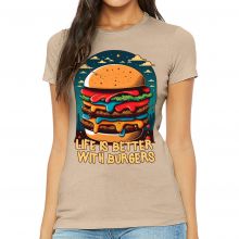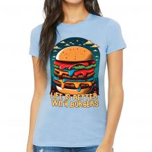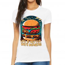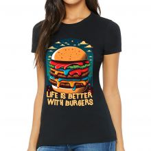Use our battle tested marketing materials for Burger Print Slim Fit T-Shirt - Quote Women's T-Shirt - Illustration Slim Fit Tee