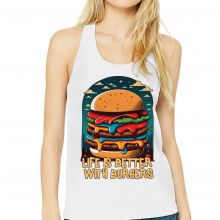 Use our battle tested marketing materials for Burger Print Women's Racerback Tank - Quote Tank Top - Illustration Workout Tank