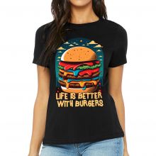 Use our battle tested marketing materials for Burger Print Women's T-Shirt - Quote T-Shirt - Illustration Relaxed Tee