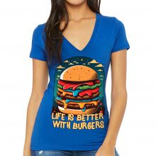 Use our battle tested marketing materials for Burger Print Women's V-Neck T-Shirt - Quote V-Neck Tee - Illustration T-Shirt