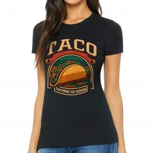 Use our battle tested marketing materials for Taco Print Slim Fit T-Shirt - Food Women's T-Shirt - Cool Graphic Slim Fit Tee