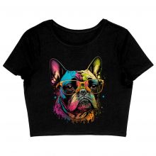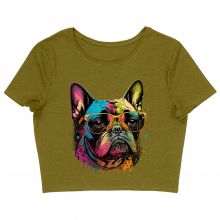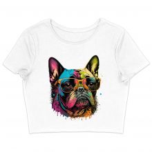 Use our battle tested marketing materials for French Bulldog Women's Cropped T-Shirt - Dog With Glasses Crop Top - Colorful Cropped Tee