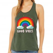 Use our battle tested marketing materials for Good Vibes Women's Racerback Tank - Rainbow Tank Top - Colorful Workout Tank