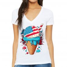 Use our battle tested marketing materials for Ice Cream Flag Women's V-Neck T-Shirt - Patriotic V-Neck Tee - Cool Design T-Shirt