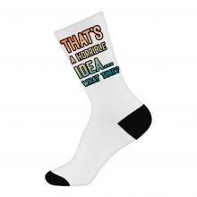 Use our battle tested marketing materials for That's a Horrible Idea What Time Socks - Printed Novelty Socks - Funny Quote Crew Socks