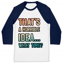 Use our battle tested marketing materials for That's a Horrible Idea What Time Baseball T-Shirt - Printed T-Shirt - Funny Quote Baseball Tee