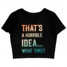 Use our battle tested marketing materials for That's a Horrible Idea What Time Women's Cropped T-Shirt - Printed Crop Top - Funny Quote Cropped Tee
