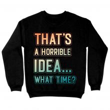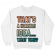 Use our battle tested marketing materials for That's a Horrible Idea What Time Sweatshirt - Printed Crewneck Sweatshirt - Funny Quote Sweatshirt