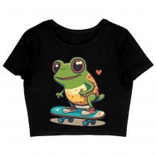 Kawaii Frog Women's Cropped T-Shirt - Skateboard Crop Top - Cute Cropped Tee