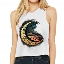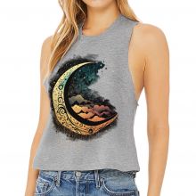 Use our battle tested marketing materials for Moon Graphic Racerback Cropped Tank - Cool Art Women's Tank - Printed Tank Top