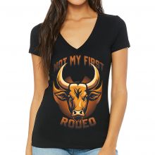 Use our battle tested marketing materials for Not My First Rodeo Women's V-Neck T-Shirt - Bull Design V-Neck Tee - Cool Graphic T-Shirt