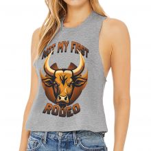 Use our battle tested marketing materials for Not My First Rodeo Racerback Cropped Tank - Bull Design Women's Tank - Cool Graphic Tank Top