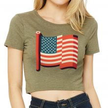 American Flag Women's Cropped T-Shirt - Trendy Crop Top - USA Themed Cropped Tee