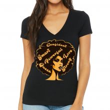 Use our battle tested marketing materials for Afro Hair Women's V-Neck T-Shirt - African American V-Neck Tee - Best Design T-Shirt