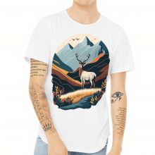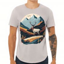 Use our battle tested marketing materials for Nature Print Curved Hem T-Shirt - Deer T-Shirt - Landscape Curved Hem Tee
