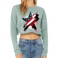 Use our battle tested marketing materials for USA Flag Cropped Sweatshirt - Star Print Women's Sweatshirt - Patriotic Crop Crew Sweatshirt