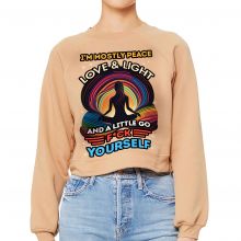 Use our battle tested marketing materials for I'm Mostly Peace Love and Light Raglan Pullover - Yoga Themed Women's Sweatshirt - Funny Pullover