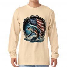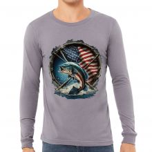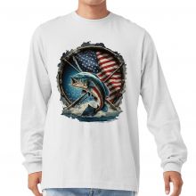 Use our battle tested marketing materials for Flag Behind Bass Fishing Long Sleeve T-Shirt - Patriotic T-Shirt - Cool Long Sleeve Tee